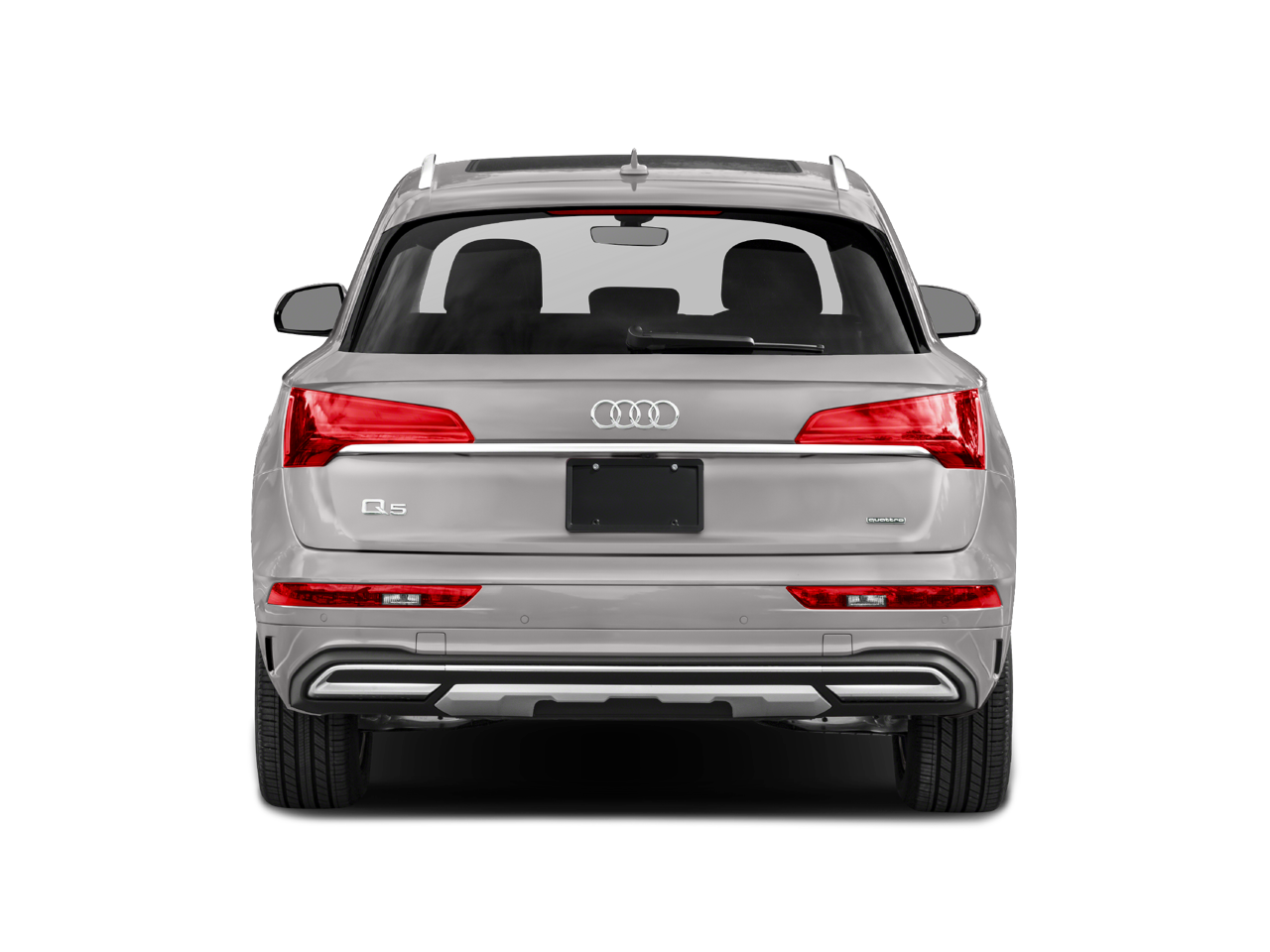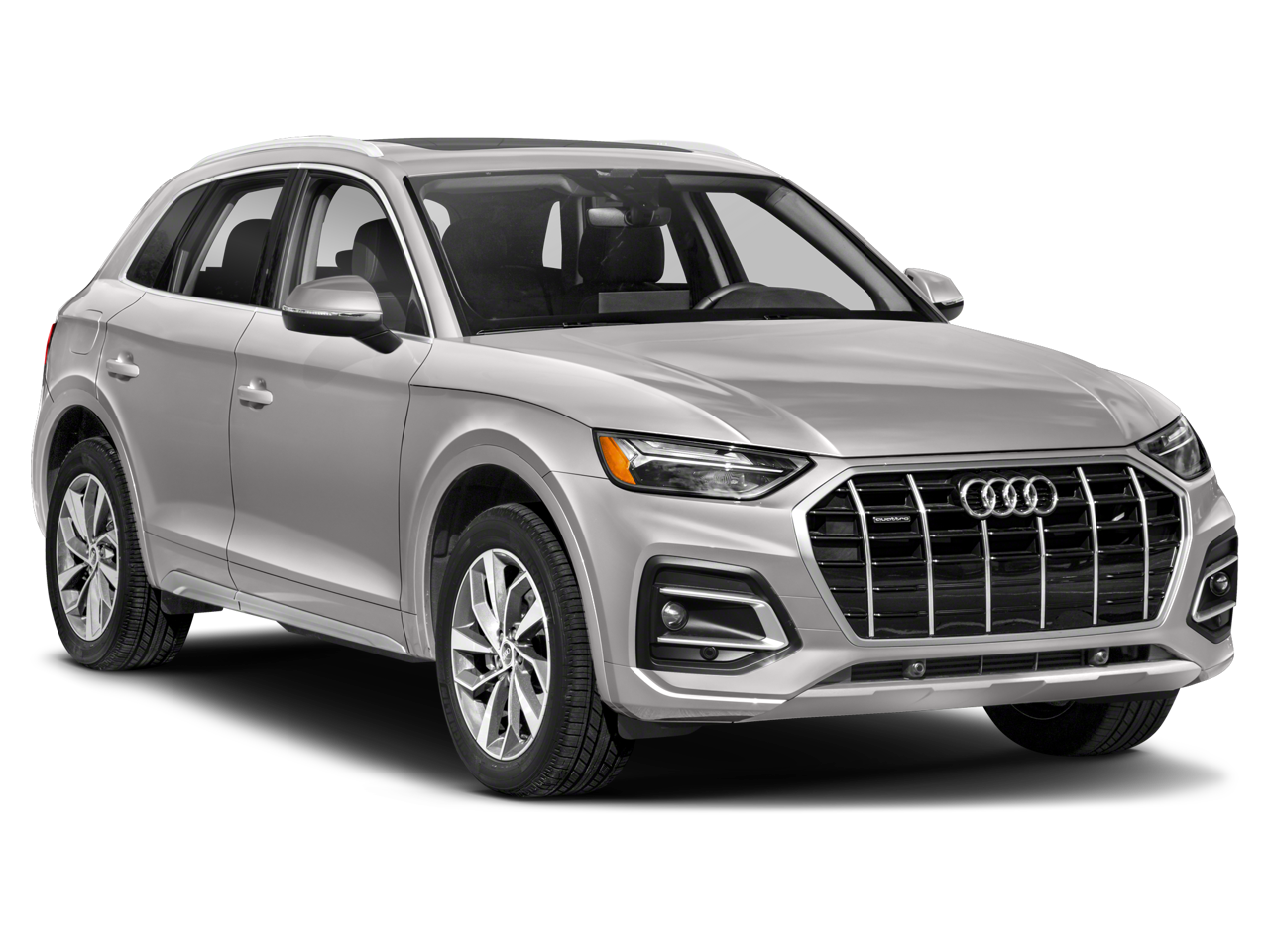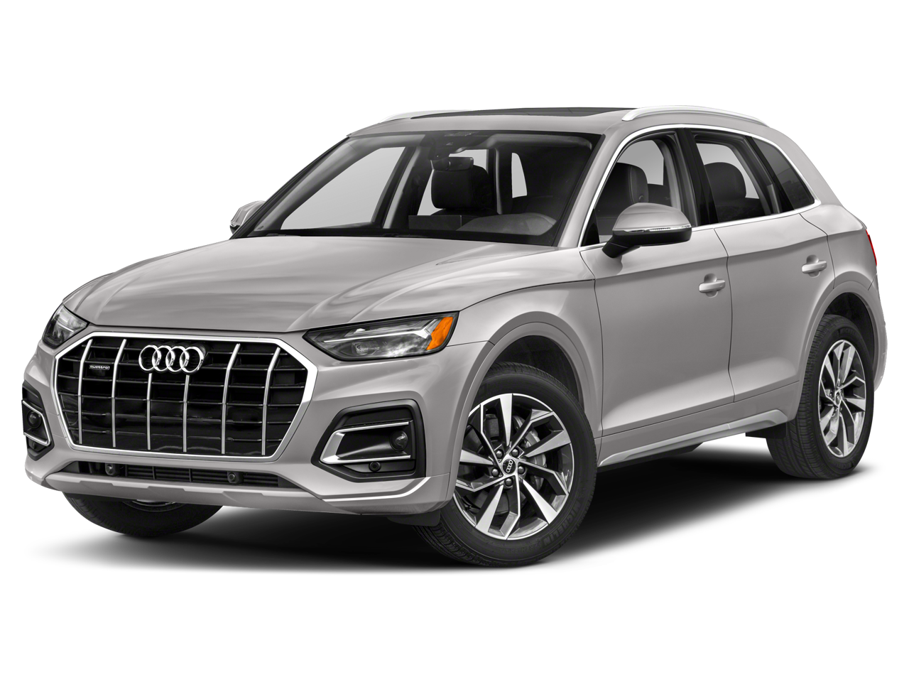 Q5 45 S line Premium quattro, 4D Sport Utility, 2.0L Turbocharged, 7-Speed Automatic S tronic, quattro, Florett Silver Metallic, Black Leather, 10 Speakers, 4-Wheel Disc Brakes, 5.302 Axle Ratio, ABS brakes, Air Conditioning, Alloy wheels, AM/FM radio, Auto High-beam Headlights, Auto-dimming Rear-View mirror, Automatic temperature control, Brake assist, Bumpers: body-color, Compass, Delay-off headlights, Driver door bin, Driver vanity mirror, Dual front impact airbags, Dual front side impact airbags, Electronic Stability Control, Emergency communication system: Audi connect CARE, Exterior Parking Camera Rear, Four wheel independent suspension, Front anti-roll bar, Front Bucket Seats, Front Center Armrest, Front dual zone A/C, Front fog lights, Front reading lights, Garage door transmitter: HomeLink, Genuine wood console insert, Genuine wood dashboard insert, Genuine wood door panel insert, Heated 8-Way Power Front Bucket Seats, Heated door mirrors, Heated front seats, Illuminated entry, Leather Seating Surfaces, Leather Shift Knob, Low tire pressure warning, Occupant sensing airbag, Outside temperature display, Overhead airbag, Overhead console, Panic alarm, Passenger door bin, Passenger vanity mirror, Power door mirrors, Power driver seat, Power Liftgate, Power passenger seat, Power steering, Power windows, Radio data system, Radio: Audi Sound System, Rain sensing wipers, Rear air conditioning, Rear anti-roll bar, Rear fog lights, Rear reading lights, Rear seat center armrest, Rear window defroster, Rear window wiper, Remote keyless entry, Roof rack, Security system, Speed control, Speed-sensing steering, Speed-Sensitive Wipers, Split folding rear seat, Spoiler, Steering wheel mounted audio controls, Tachometer, Telescoping steering wheel, Tilt steering wheel, Traction control, Trip computer, Turn signal indicator mirrors, Variably intermittent wipers, and Wheels: 18 5-Arm-Star Design.