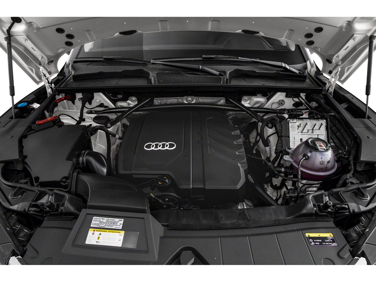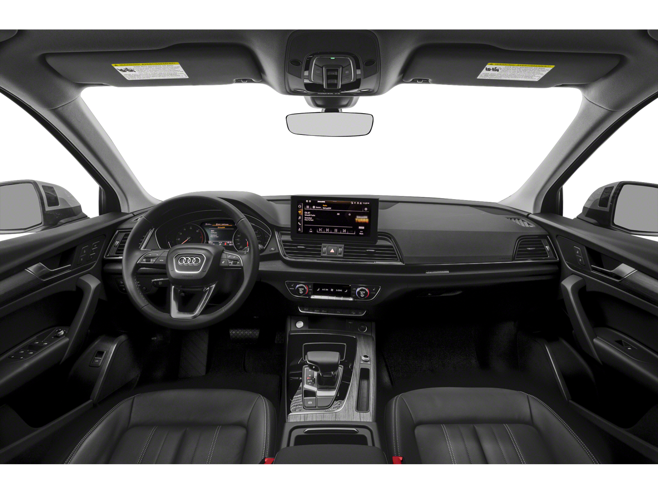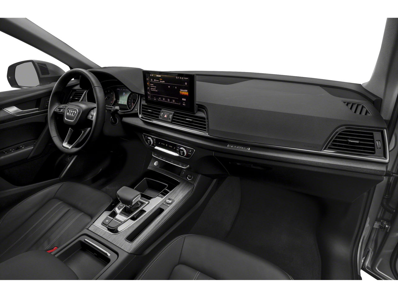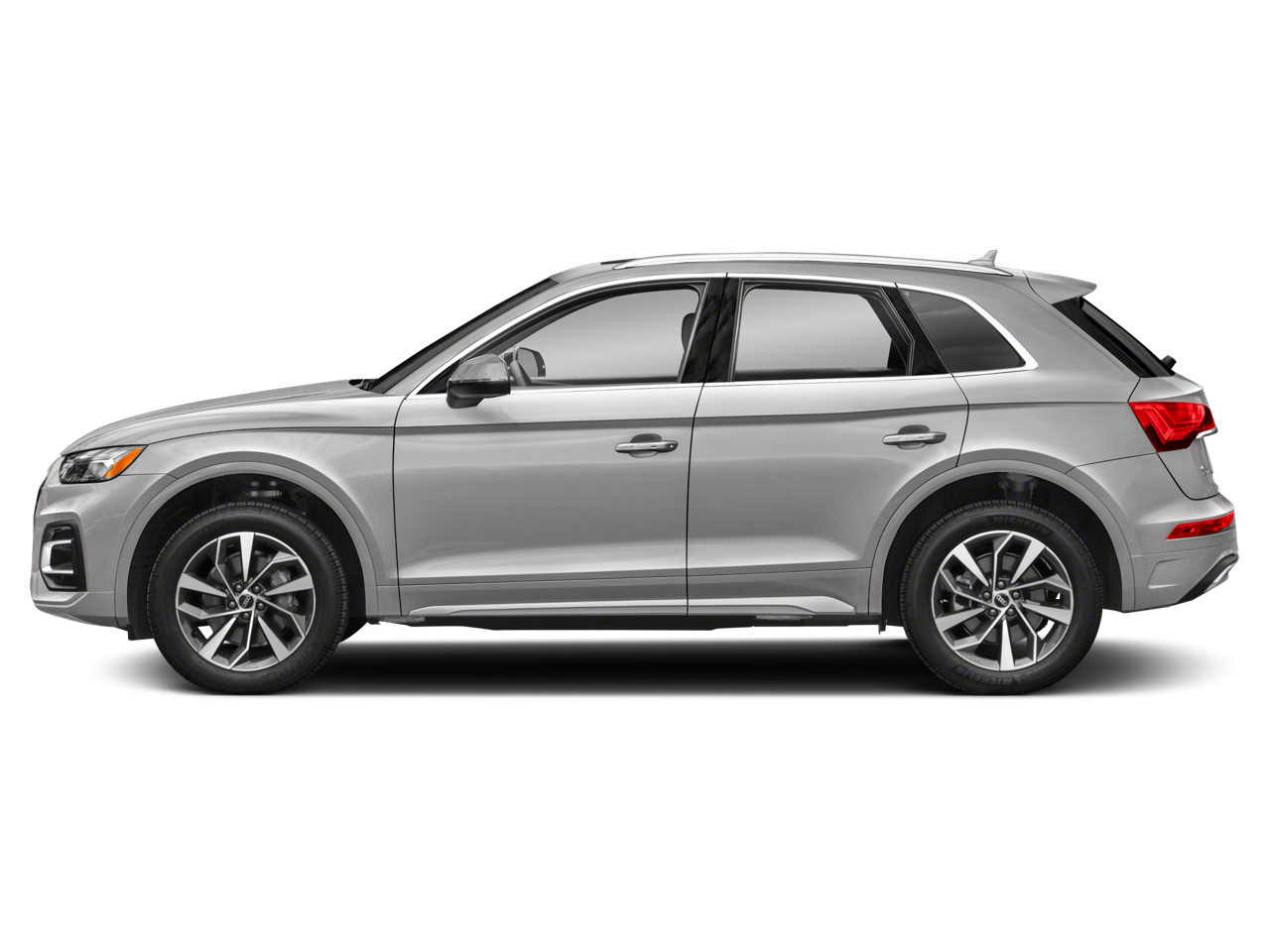 Q5 45 S line Premium quattro, 4D Sport Utility, 2.0L Turbocharged, 7-Speed Automatic S tronic, quattro, Florett Silver Metallic, Black Leather, 10 Speakers, 4-Wheel Disc Brakes, 5.302 Axle Ratio, ABS brakes, Air Conditioning, Alloy wheels, AM/FM radio, Auto High-beam Headlights, Auto-dimming Rear-View mirror, Automatic temperature control, Brake assist, Bumpers: body-color, Compass, Delay-off headlights, Driver door bin, Driver vanity mirror, Dual front impact airbags, Dual front side impact airbags, Electronic Stability Control, Emergency communication system: Audi connect CARE, Exterior Parking Camera Rear, Four wheel independent suspension, Front anti-roll bar, Front Bucket Seats, Front Center Armrest, Front dual zone A/C, Front fog lights, Front reading lights, Garage door transmitter: HomeLink, Genuine wood console insert, Genuine wood dashboard insert, Genuine wood door panel insert, Heated 8-Way Power Front Bucket Seats, Heated door mirrors, Heated front seats, Illuminated entry, Leather Seating Surfaces, Leather Shift Knob, Low tire pressure warning, Occupant sensing airbag, Outside temperature display, Overhead airbag, Overhead console, Panic alarm, Passenger door bin, Passenger vanity mirror, Power door mirrors, Power driver seat, Power Liftgate, Power passenger seat, Power steering, Power windows, Radio data system, Radio: Audi Sound System, Rain sensing wipers, Rear air conditioning, Rear anti-roll bar, Rear fog lights, Rear reading lights, Rear seat center armrest, Rear window defroster, Rear window wiper, Remote keyless entry, Roof rack, Security system, Speed control, Speed-sensing steering, Speed-Sensitive Wipers, Split folding rear seat, Spoiler, Steering wheel mounted audio controls, Tachometer, Telescoping steering wheel, Tilt steering wheel, Traction control, Trip computer, Turn signal indicator mirrors, Variably intermittent wipers, and Wheels: 18 5-Arm-Star Design.