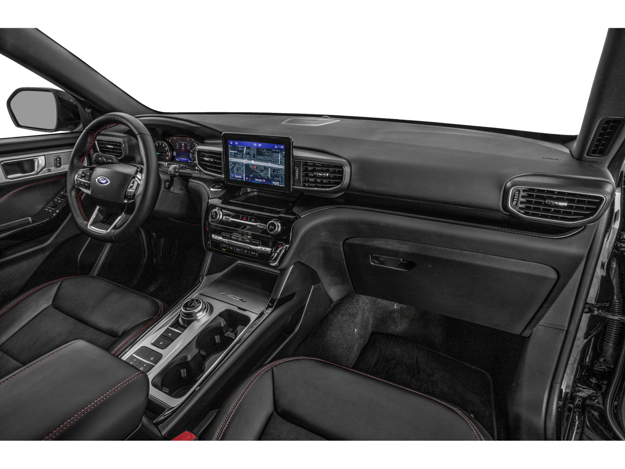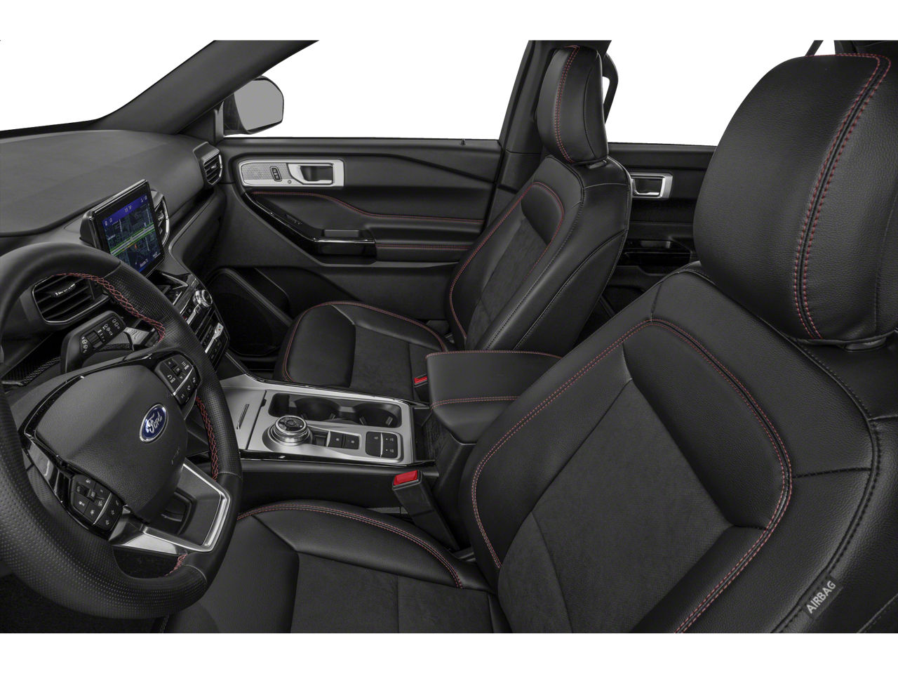 Class IV Trailer Tow Package, Equipment Group 250A, Explorer ST-Line, 4D Sport Utility, 2.3L EcoBoost I-4, 10-Speed Automatic, RWD, Star White Metallic Tri-Coat, Ebony Leather, 12 Speakers, 3.58 Non-Limited-Slip Rear Axle Ratio, 3rd row seats: bench, 4-Wheel Disc Brakes, 4G LTE Wi-Fi Hotspot Credit, ABS brakes, Air Conditioning, Alloy wheels, AM/FM radio: SiriusXM, Auto High-beam Headlights, Auto Start-Stop Removal (DISC), Auto-dimming Rear-View mirror, Automatic temperature control, Brake assist, Bumpers: body-color, Compass, Delay-off headlights, Driver door bin, Driver vanity mirror, Dual front impact airbags, Dual front side impact airbags, Electronic Stability Control, Emergency communication system: SYNC 3 911 Assist, Exterior Parking Camera Rear, FordPass Connect, Four wheel independent suspension, Front anti-roll bar, Front Bucket Seats, Front Center Armrest, Front dual zone A/C, Front fog lights, Front reading lights, Fully automatic headlights, Heated door mirrors, Heated front seats, Heated steering wheel, Htd ActiveX Trimmed Captain's Chairs w/Miko Insert, Illuminated entry, Knee airbag, Leather steering wheel, Low tire pressure warning, Navigation System, Occupant sensing airbag, Outside temperature display, Overhead airbag, Overhead con