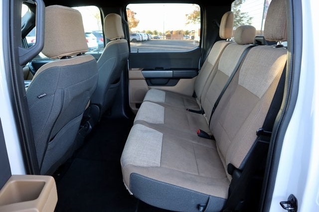 F-150 XLT, Ford Gold Certified Certified, 4D SuperCrew, 3.5L V6 EcoBoost, 10-Speed Automatic, RWD, Oxford White, Tan Cloth, 4-Wheel Disc Brakes, 6 Speakers, 8-Way Power Driver's Seat w/Power Lumbar, ABS brakes, Air Conditioning, Alloy wheels, AM/FM radio, Auto High-beam Headlights, Brake assist, Bumpers: chrome, Compass, Delay-off headlights, Driver door bin, Driver vanity mirror, Dual front impact airbags, Dual front side impact airbags, Electronic Stability Control, Emergency communication system: SYNC 4 911 Assist, Exterior Parking Camera Rear, Front anti-roll bar, Front Center Armrest w/Storage, Front fog lights, Front License Plate Bracket, Front reading lights, Front wheel independent suspension, Fully automatic headlights, Heated door mirrors, Illuminated entry, Leather 40/20/40 Front Seat, Low tire pressure warning, Occupant sensing airbag, Outside temperature display, Overhead airbag, Overhead console, Panic alarm, Passenger door bin, Passenger vanity mirror, Power door mirrors, Power steering, Power windows, Radio data system, Radio: AM/FM Stereo w/6 Speakers, Rear reading lights, Rear step bumper, Rear window defroster, Remote keyless entry, Security system, Speed control, Speed-sensing steering, Split folding rear seat, Steering wheel mounted audio controls, SYNC 4, Tachometer, Telescoping steering wheel, Tilt steering wheel, Traction control, Trip computer, Variably intermittent wipers, Voltmeter, and Wheels: 17 Silver Painted Aluminum.