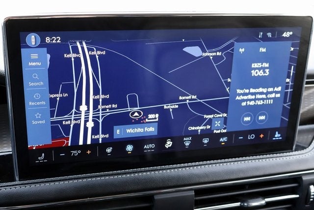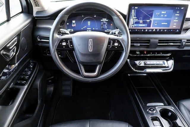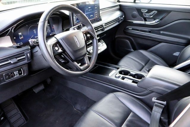 Equipment Group 201A (2 Additional USB Ports in Rear of Center Console, 60/40 EasyFold Rear Seat w/Power Seatback Release, Frameless Auto Dimming Rearview Mirror, Hands-Free Liftgate, Heated Sideview Mirrors, Heated Steering Wheel, Heated/Ventilated Driver & Front Passenger Seats, Phone As A Key (PAAK), Power Tilt/Telescoping Steering Column w/Memory, Rain Sensing Wipers, Universal Garage Door Opener, Windshield Wiper De-Icer, and Wireless Charging Pad), 19 Bright Machined Aluminum Wheels, 3.81 Axle Ratio, 360-Degree Camera, 4-Wheel Disc Brakes, 9 Speakers, ABS brakes, Air Conditioning, Alexa Built-In, Alloy wheels, AM/FM radio: SiriusXM, Apple CarPlay/Android Auto, Auto High-beam Headlights, Auto-dimming Rear-View mirror, Automatic temperature control, Brake assist, Bumpers: body-color, Compass, Delay-off headlights, Driver door bin, Driver vanity mirror, Dual front impact airbags, Dual front side impact airbags, Electronic Stability Control, Emergency communication system: 911 Assist, Four wheel independent suspension, Front anti-roll bar, Front Bucket Seats, Front Center Armrest, Front dual zone A/C, Front License Plate Bracket, Front reading lights, Front/Side/Rear Parking Sensors, Fully automatic headlights, Heated door mirrors, Heated front seats, Illuminated entry, Knee airbag, Lane Departure Warning System, Leather steering wheel, Low tire pressure warning, Memory seat, Navigation system: Connected Navigation (3-year trial), Occupant sensing airbag, Outside temperature display, Overhead airbag, Overhead console, Panic alarm, Passenger door bin, Passenger vanity mirror, Power door mirrors, Power driver seat, Power Liftgate, Power passenger seat, Power steering, Power windows, Premium Leather-Trimmed Heated Captain's Chairs, Radio data system, Radio: Lincoln Premium Audio System w/MP3, Rear anti-roll bar, Rear Parking Sensors, Rear reading lights, Rear seat center armrest, Rear window defroster, Rear window wiper, Remote keyless entry, Reverse Brake Assist, Roof rack: rails only, Security system, SiriusXM Radio, Speed control, Speed-sensing steering, Speed-Sensitive Wipers, Split folding rear seat, Spoiler, Star Light Metallic Applique, Steering wheel mounted A/C controls, Steering wheel mounted audio controls, SYNC 4 Communications & Entertainment System, Tachometer, Telescoping steering wheel, Tilt steering wheel, Traction control, Trip computer, and Variably intermittent wipers.