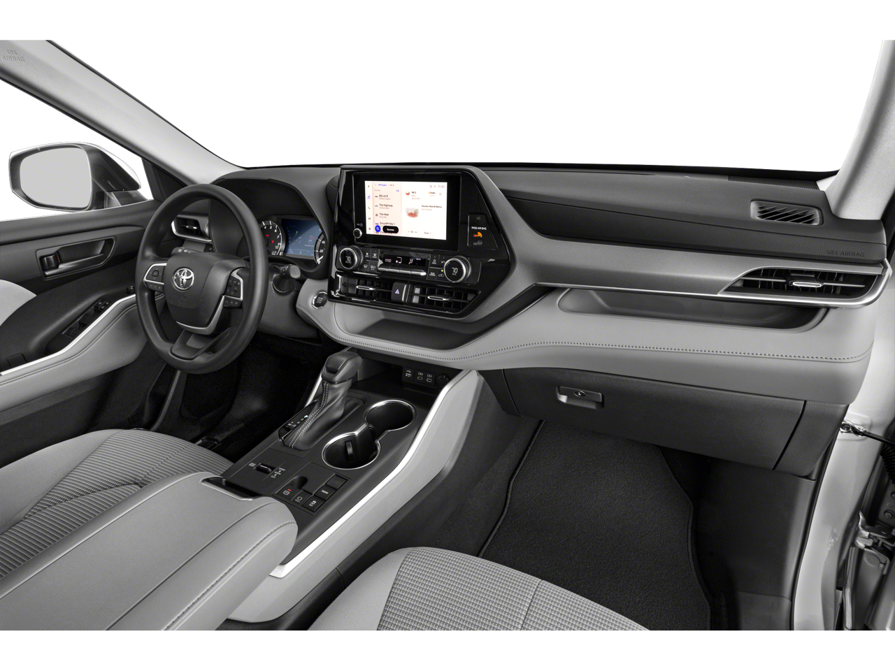 Backup Camera/ Rearview Camera, Bluetooth®, Collision Avoidance System, Collision Warning Alert System, Apple Carplay/ Android Auto, Voice Recognition, Smartphone App Integration, USB Port, Aux Input, Sirius XM Radio, Parking Sensors, Power Seats, Alloy Wheels, ____CAR GURUS____, Aluminum Wheels, Climate Package, Highlander LE, 4D Sport Utility, 2.4L I4 PDI Turbocharged DOHC 16V LEV3-SULEV30 265hp, 8-Speed Automatic, FWD, Gray, Graphite Cloth, 18 Painted Alloy Wheels, 3.329 Axle Ratio, 3rd row seats: split-bench, 4-Wheel Disc Brakes, 6 Speakers, ABS brakes, Air Conditioning, Alloy wheels, AM/FM radio: SiriusXM, Apple CarPlay/Android Auto, Auto High-beam Headlights, Automatic temperature control, Brake assist, Bumpers: body-color, Delay-off headlights, Driver door bin, Driver vanity mirror, Dual front impact airbags, Dual front side impact airbags, Electronic Stability Control, Emergency communication system: Safety Connect (up to 10-year trial subscription), Exterior Parking Camera Rear, Fabric Seat Trim, Four wheel independent suspension, Front anti-roll bar, Front Bucket Seats, Front Center Armrest, Front dual zone A/C, Front fog lights, Front reading lights, Fully automatic headlights, Heated door mirrors, Illuminated entry, Knee airbag, Leather Shift Knob, Leather steering wheel, Low tire pressure warning, Occupant sensing airbag, Outside temperature display, Overhead airbag, Overhead console, Panic alarm, Passenger door bin, Passenger vanity mirror, Power door mirrors, Power driver seat, Power Liftgate, Power steering, Power windows, Radio: 8 Toyota Audio Multimedia, Rear air conditioning, Rear anti-roll bar, Rear reading lights, Rear seat center armrest, Rear window defroster, Rear window wiper, Reclining 3rd row seat, Remote keyless entry, Security system, Speed control, Speed-sensing steering, Split folding rear seat, Spoiler, Steering wheel mounted audio controls, Tachometer, Telescoping steering wheel, Tilt steering wheel, Traction control, Trip computer, Turn signal indicator mirrors, Variably intermittent wipers.