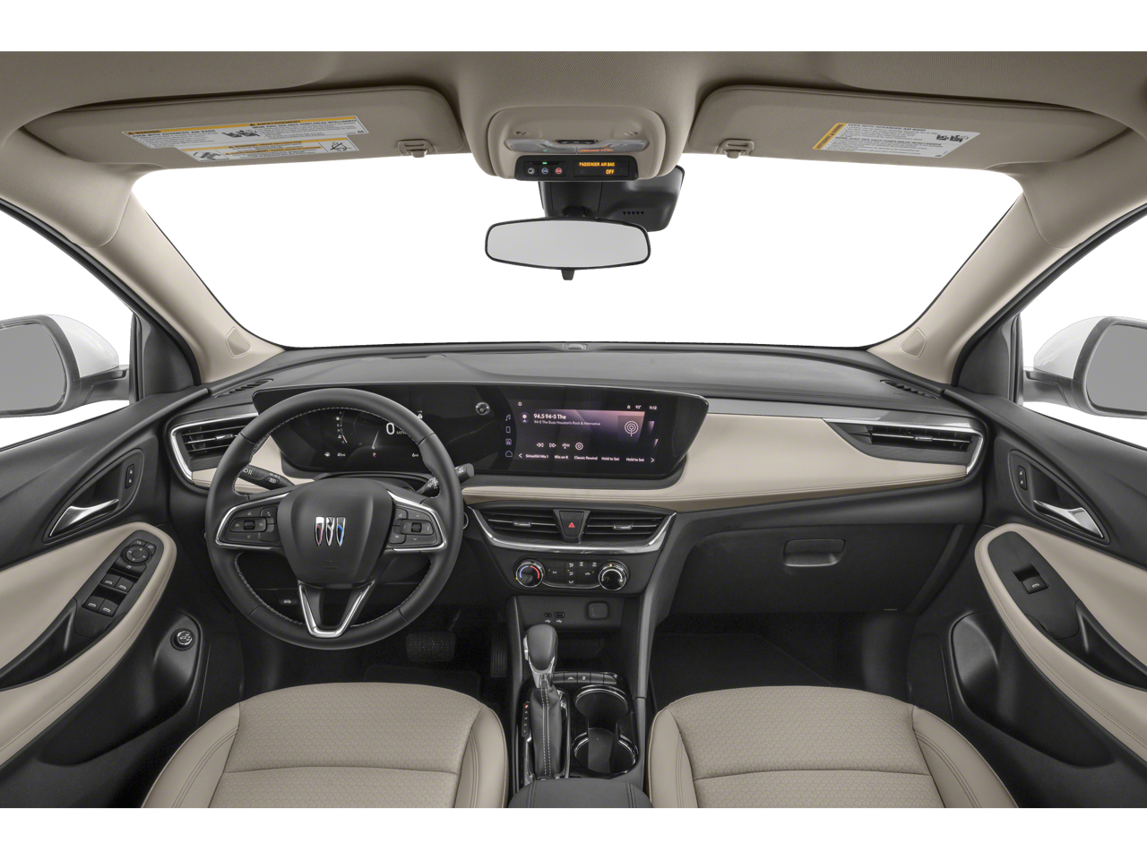 Preferred Equipment Group 1SB, 2 USB Ports (1 Type-A, 1 Type-C), 4-Way Manual Passenger Seat Adjuster, 4-Wheel Disc Brakes, 5.45 Final Drive Axle Ratio, 6 Speakers, 6-Way Manual Driver Seat Adjuster, ABS brakes, Air Conditioning, Alloy wheels, AM/FM radio: SiriusXM, Auto High-beam Headlights, Automatic temperature control, Brake assist, Bumpers: body-color, Cloth w/Leatherette Seat Trim, Compass, Delay-off headlights, Driver door bin, Driver vanity mirror, Dual front impact airbags, Dual front side impact airbags, Electric Auxiliary Heating/Defroster, Electronic Stability Control, Emergency communication system: OnStar and Buick connected services capable, Enhanced Performance 6-Speaker System, Front anti-roll bar, Front Bucket Seats, Front Center Armrest, Front License Plate Bracket, Front reading lights, Front wheel independent suspension, Fully automatic headlights, Heated door mirrors, Illuminated entry, Knee airbag, Low tire pressure warning, Occupant sensing airbag, Outside temperature display, Overhead airbag, Overhead console, Panic alarm, Passenger door bin, Passenger vanity mirror, Power door mirrors, Power steering, Power windows, Radio data system, Radio: Audio System w/AM/FM, Rear reading lights, Rear side impact airbag, Rear window defroster, Rear window wiper, Remote keyless entry, Ride & Handling Suspension, Security system, SiriusXM Trial Subscription, Speed control, Speed-sensing steering, Split folding rear seat, Spoiler, Steering wheel mounted audio controls, Tachometer, Telescoping steering wheel, Tilt steering wheel, Traction control, Trip computer, Variably intermittent wipers, Wheels: 18 Bright Silver Painted Aluminum, and Wireless Apple CarPlay/Wireless Android Auto.