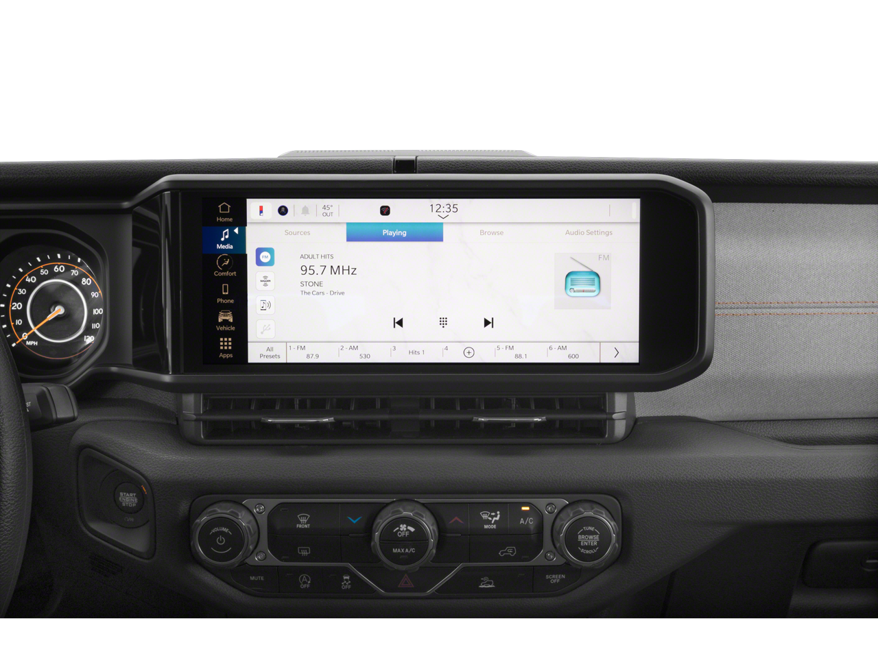 Quick Order Package 24S Sport S (Advanced Brake Assist, Automatic Headlamps, Deep Tint Sunscreen Windows, Enhanced Adaptive Cruise Control, Full Speed Forward Collision Warning Plus, Normal Duty Plus Suspension, Power Heated Mirrors, Premium Wrapped Steering Wheel, Security Alarm, Sun Visors w/Illuminated Vanity Mirrors, and Wheels: 17 x 7.5 Gray), 110 MPH Vehicle Max Speed Calibration, 12.3 Touchscreen Display, 3.73 Rear Axle Ratio, 4-Wheel Disc Brakes, 4G LTE Wi-Fi Hot Spot, 8 Speakers, ABS brakes, Air Conditioning, Alexa Built-In, AM/FM radio: SiriusXM, Apple CarPlay, Apple CarPlay/Android Auto, Black 3-Piece Hard Top, Brake assist, Cloth Low-Back Bucket Seats, Compass, Connectivity - US/Canada, Delay-off headlights, Driver door bin, Driver vanity mirror, Dual front impact airbags, Dual front side impact airbags, Electronic Stability Control, Freedom Panel Storage Bag, Front anti-roll bar, Front Bucket Seats, Front Center Armrest w/Storage, Front fog lights, Front License Plate Bracket, Front reading lights, Google Android Auto, Illuminated entry, Integrated roll-over protection, Low tire pressure warning, MOPAR Spray In Bedliner, Normal Duty Suspension, Occupant sensing airbag, Outside temperature display, Overhead airbag, Panic alarm, ParkView Rear Back-Up Camera, Passenger door bin, Passenger vanity mirror, Power steering, Power windows, Radio data system, Radio: Uconnect 5 w/12.3 Display, Rear anti-roll bar, Rear reading lights, Rear Sliding Window, Rear Window Defroster, Remote keyless entry, Speed control, Split folding rear seat, Steering wheel mounted audio controls, Tachometer, Telescoping steering wheel, Tilt steering wheel, Traction control, Trip computer, USB Host Flip, Variably intermittent wipers, Voltmeter, and Wheels: 17 x 7.5 Black Steel Styled.
