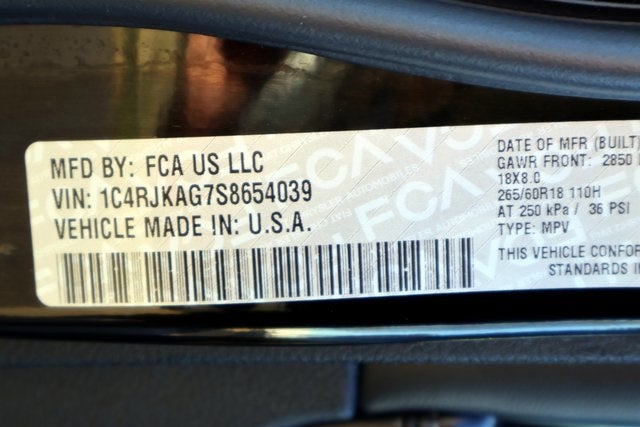 Altitude Package, Grand Cherokee L Altitude, 4D Sport Utility, 3.6L V6 24V VVT, 8-Speed Automatic, 4WD, Diamond Black Crystal Pearlcoat, Global Black Cloth, 3.45 Rear Axle Ratio, 3rd row seats: split-bench, 4-Wheel Disc Brakes, 6 Speakers, ABS brakes, Active Cruise Control, Air Conditioning, Alloy wheels, AM/FM radio: SiriusXM, Anti-whiplash front head restraints, Automatic temperature control, Brake assist, Bumpers: body-color, Cloth Seats, Compass, Delay-off headlights, Driver door bin, Driver vanity mirror, Dual front impact airbags, Dual front side impact airbags, Electronic Stability Control, Emergency communication system, Four wheel independent suspension, Front anti-roll bar, Front Bucket Seats, Front Center Armrest w/Storage, Front dual zone A/C, Front reading lights, Fully automatic headlights, Heated door mirrors, Illuminated entry, Knee airbag, Low tire pressure warning, Manual Fold Seatbacks, Normal Duty Suspension, Occupant sensing airbag, Outside temperature display, Overhead airbag, Overhead console, Panic alarm, ParkView Rear Back-Up Camera, Passenger door bin, Passenger vanity mirror, Power door mirrors, Power driver seat, Power steering, Power windows, Radio data system, Radio: Uconnect 5 with 8.4 Display, Rear air conditioning, Rear anti-roll bar, Rear reading lights, Rear window defroster, Rear window wiper, Reclining 3rd row seat, Remote keyless entry, Security system, Speed control, Speed-Sensitive Wipers, Split f
